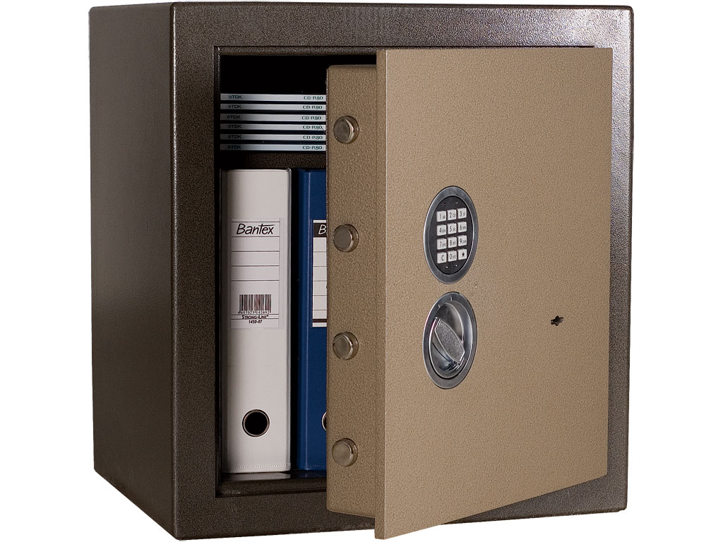 - На сейф нанесено порошковое износоустойчивое покрытие коричневого цвета;
